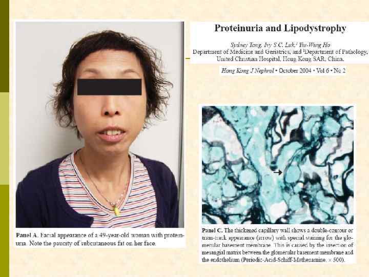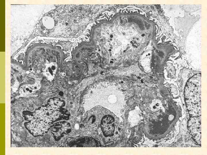 DDD – болезнь плотных депозитов (мембрано-пролиферативный гломерулонефрит II типа) q DDD – системная болезнь неизвестного происхождения q Клиническая характеристика q мебрано-пролиферативный гломерулонефрит q С 3 при ИФИ, без отложений иммуноглобулинов q поражение глаз q депозиты в капиллярах сетчатки, мембране Bruch q парциальная липодистрофия q хроническая гипокомплементемия, высокая подверженность инфекциям q высокая частота сахарного диабета