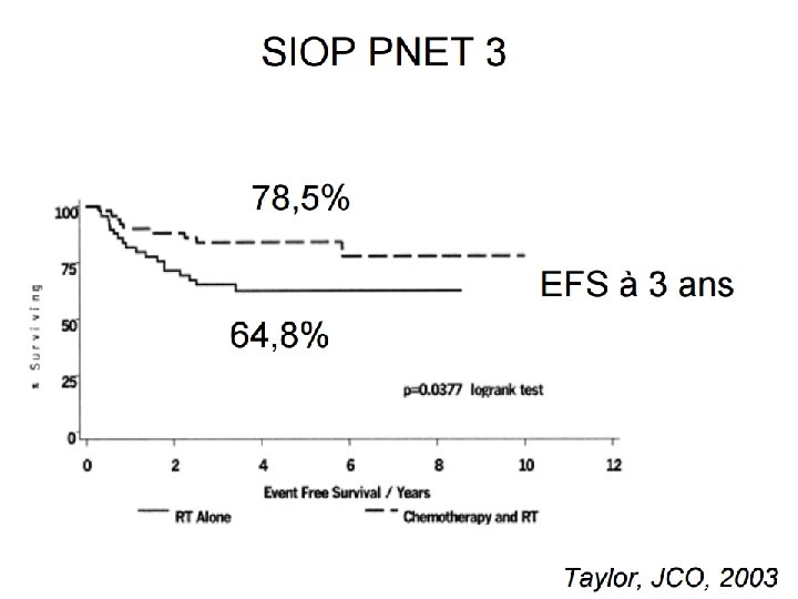 Traitement Un seul essai a montré l’intérêt de la chimio chez les risques standard SIOP PNET 3 qui a évalue 217 patients avec âge médian de 7, 67 ans