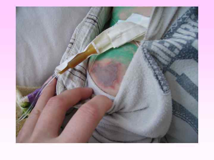 Режим, уход и питание • • Некрозы необходимо сохранять в сухом виде, не допуская увлажнения их, поскольку через мокнущие поверхности некрозов легко происходит их инфицирование. При отторжении некрозов поверхности ран обрабатывают маслом облепихи или шиповника, солкосериловой мазью, мазью Вишневского. Можно чередовать эти препараты. Слизистые полости рта не реже трех раз в сутки обрабатываются 2% раствором гидрокарбоната натрия или слабым раствором перманганата калия. Налеты на слизистой языка удаляют смесью 2% соды с глицерином (1: 1). Губы смазывают вазелином или глицерином, а при выраженной сухости их и при появлении трещин - маслом облепихи или шиповника. Глаза не реже 3 -х раз в сутки обрабатывают 20% раствором сульфацила натрия или 0, 25% раствором левомицетина. Если больной находится в бессознательном состоянии и веки его полностью не смыкаются, во избежание развития кератита следует закапывать в глаза масляный раствор ретинола и прикрывать глаза салфетками, смоченными 0, 9% физиологическим раствором.