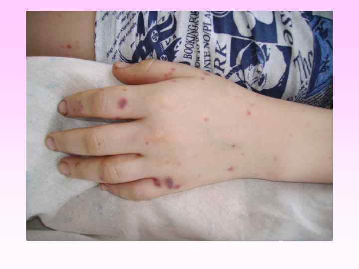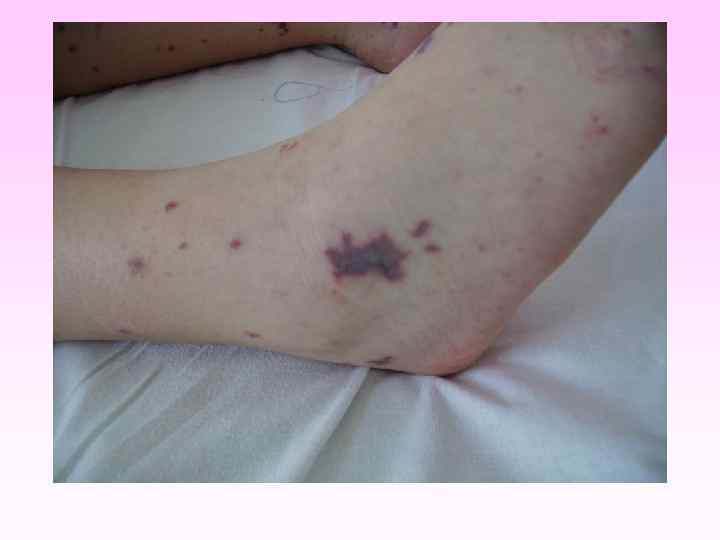 ДИФФЕРЕНЦИАЛЬНАЯ ДИАГНОСТИКА • острая респираторная вирусная инфекция с нейротоксикозом, • грипп с геморрагическим синдромом, • геморрагический васкулит (болезнь Шенлейн-Геноха), • тромбоцитопеническая пурпура (болезнь Верльгофа); • реже – экзантематозные инфекции (корь, краснуха, скарлатина).