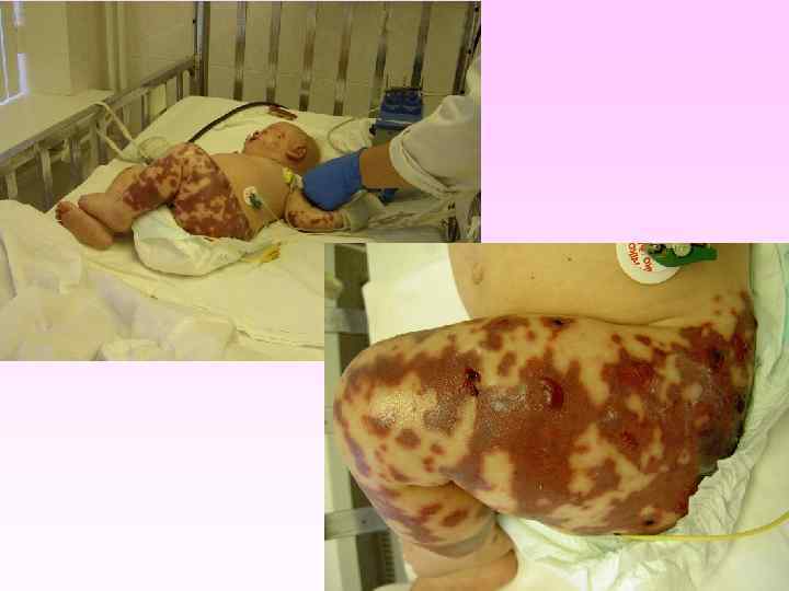 • Менингококковая инфекция. Менингококкемия. Геморрагическая звездчатая сыпь с некрозами на коже.