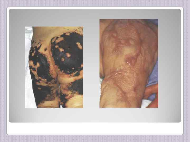 Глубокие и обширные кровоизлияния могут некротизироваться. В дальнейшем участки некроза отторгаются и образуются медленно заживающие язвы. Значительно реже, чем в кожу, наблюдаются метастазы возбудителя в суставы. Артриты возникают позже, чем сыпь, к концу 1 -й — началу 2 -й недели болезни. Прогноз их благоприятный, при выздоровлении функции суставов полностью восстанавливаются.