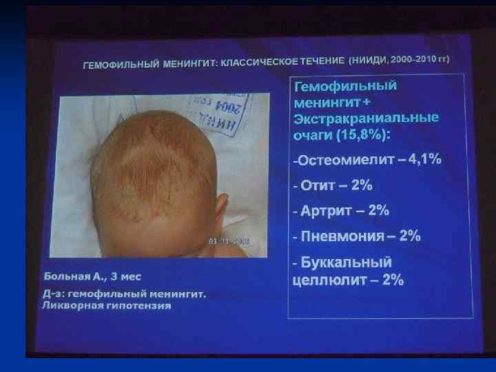 Мероприятия в очаге ГФМИ n n n 1. Карантин сроком на 10 дней. 2. Осмотр контактных ЛОР-врачом в первые 24 часа. для выявления больных назофарингитом, клиническое наблюдение с термометрией и осмотром кожных покровов в течение 10 дней. 3. Выявленные больные с О. НФ подлежат бак. исследованию, госпитализации в стационар по соц. показаниям (при наличии в окружении детей до 3 лет). 4. Всем лицам без воспалительных изменений в носоглотке проводят химиопрофилактику. 5. Детям в возрасте до 1 года введение иммуноглобулина 1. 5 дозы; от 2 -7 лет -3. 0 мл вм не поднее 7 дня.