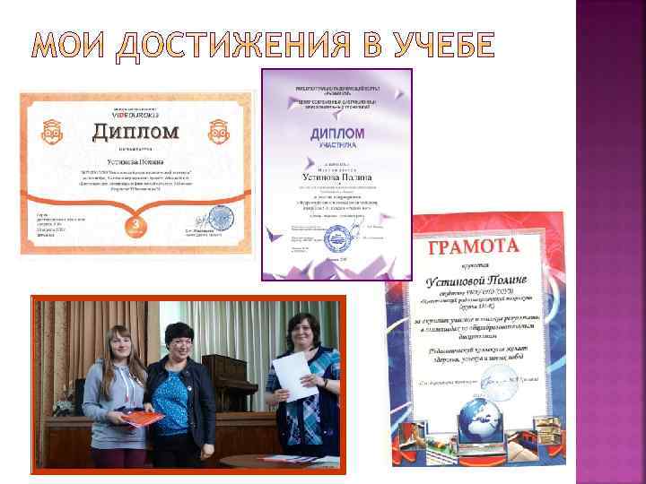 Полина Устинова, моя одногруппница. Знаю ее уже несколько лет. Полина хорошая, веселая, отзывчивая, дружелюбная, всегда приходит на помощь. Самая умная девочка в группе. Жизнерадостная, активная. Карасёва Ксения Полинка, очень классная, умная, добрая, отзывчивая и весёлая, с ней никогда не бывает скучно. Всегда рада прийти на помощь. Шишкина Марина