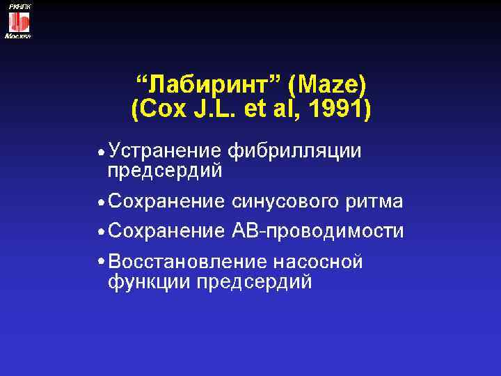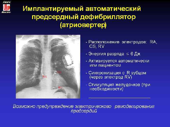Основные немедикаментозные методы лечения Хирургическое лечение: операция типа “лабиринт” Радиочастотная катетерная аблация или модификация АВ узла: прекращение или замедление распространения импульсов от предсердий к желудочкам Электрокардиостимуляция: имплантация кардиостимулятора, который усраняет брадикардию