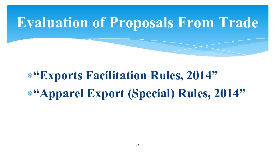 Evaluation of Proposals From Trade “Exports Facilitation Rules, 2014” “Apparel Export (Special) Rules, 2014” 22