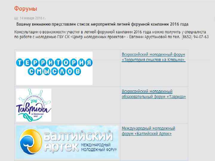 Мероприятия летней форумной кампании 2016 года