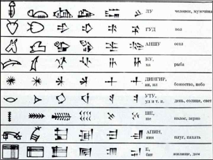 § Около 3000 года до н. э. народности Месопотамии уже знали письмо и умели читать. Нацарапанные на камне, выдавленные в глине первоначальные пиктограммы постепенно заменялись сложными геометрическими знаками. Писцы заостренной тростниковой палочкой чертили на мягкой глине; получавшиеся при этом знаки, похожие на клин, означали целое слово, или слог.