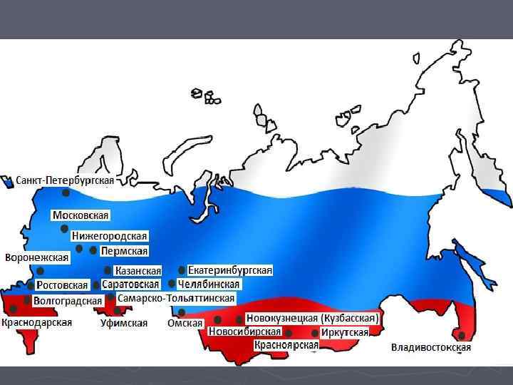 ► Росси йская Федера ция — Росси я - государство, расположенное в Восточной Европе и Северной Азии. Является крупнейшим государством мира (17 075 400 км² или 11, 46 % площади всей суши Земли, или 12, 65 % заселённой человеком суши, что почти вдвое больше, чем у занимающей второе место Канады). ► Население России на 2010 год составляет 142, 9 человек (девятое место в мире). ► Всего в России 11 городов с населением более миллиона человек: Москва, Санкт-Петербург, Новосибирск, Екатеринбург, Нижний Новгород, Казань, Самара, Омск, Челябинск, Ростов-на-Дону, Уфа. ► Россия граничит с 18 странами (самый большой показатель в мире)