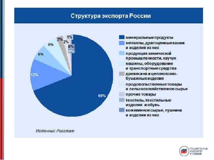 Проблема экономического роста России Прогнозируемые сравнительно низкие темпы роста российской экономики (в среднем лишь 2, 2% в год) определяются двумя фундаментальными слабостями. • Во первых, это преобладание в структуре экспорта углеводородов, мировой рынок которых растет в несколько раз медленнее, чем рынок других товаров и услуг. • Во вторых, долгосрочная стагнация добычи, которая не позволит нашей стране использовать даже ограниченные возможности увеличения поставок, предоставляемые нефтегазовым рынком. (по официальному прогнозу, российский нефтегазовый экспорт будет расти лишь на 0, 3% в год — почти в 5 раз медленнее, чем мировой спрос)