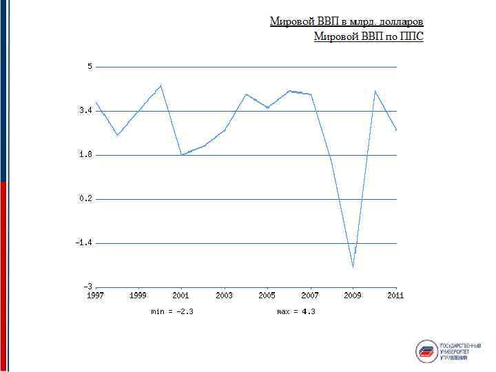 Показатели кризиса 2009 г. показатели Россия США Китай Падение ВВП -10% -2, 8% +7, 5% Падение 20% промышленного производства 4% Падение фондового рынка В два раза В пять раз Место по объему С 6 места на 8 1 место ВВП на душу С 58 места на 65 место 2 место