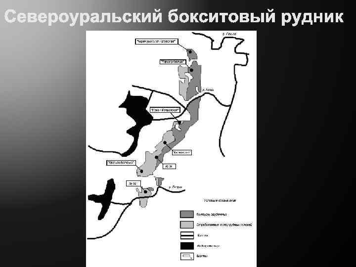Добыча бокситов происходит в шахтах на глубине более 860 метров Главные ПИ: алюминиевые руды — бокситы Попутные ПИ: известняк флюсовый