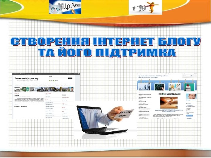 «Створення й ведення власного блогу» Виконала: Клочкова Діана Анатоліївна. 1. За потреби зареєструватись на Блог створити на сайті blog. i. ua Деражнянське територіальне відділення Малої сайті. або самостійно вибрати 2. Керуючись вказівками, створити академії наук створення Інтернет-основу для. України, Маниковецька блогів. загальноосвітня школа І-ІІІ блог. ступенів, темуклас, «Створення 10 текст село 3. Указати як 1. Потрібно знайти кнопку. Маниківці Деражнянського району Хмельницької «Я блогів» і додати повідомлення посилання Створити блог. створив (створила) власний блог» . області. 2. Ввести пароль та логін. 4. Довільним способом (усно, Керівник: Савич (Потрібно попередньо Оксана Григорівна, поштою) повідомити електронною вчитель фізики зареєструватися на сайті. свої дані вчителю та однокласникам. та інформатики, перша кваліфікаційна категорія. 3. Вказати нік (ім’я) та натиснути Зберегти. 4. Як результат отримуємо власний блог. 5. Отримавши дані однокласників, додати власне повідомлення на блогах однокласників. 6. Відредагувати профіль, оформити власний блог (аватар, звуки, картинки тощо).