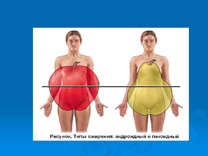Маркеры метаболического синдрома - висцеральное (абдоминальное) ожирение: Ø характеризуется расположением основной массы жира в брюшной полости, на передней брюшной стенке, туловище, шее и лице. Распределение жировой ткани в организме подвержено генетическому контролю. Ø