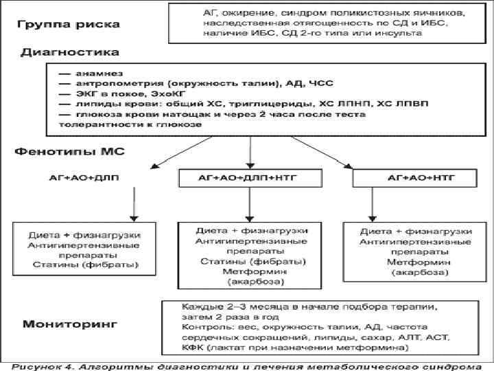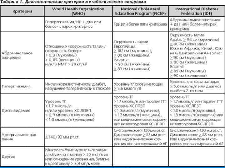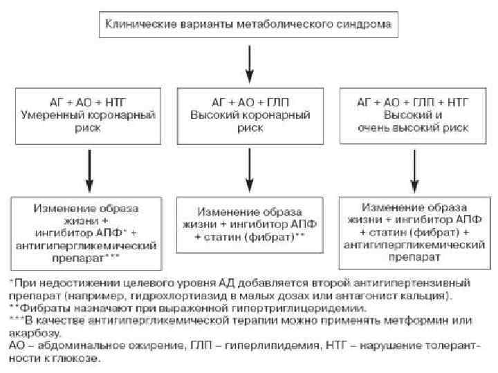 Первые признаки метаболического синдрома ->10 лет ->атеросклероз сосудов-> 10 лет -> осложнения : инфаркт, инсульт, сахарный диабет и смерть. Объем талии более 88 см у женщин, и более 102 см у мужчин Артериальное давление больше и/или ровно 130/85 мм рт ст Уровень триглицеридов в биохимическом анализе крови более или ровно 1, 7 ммоль/л Сахар крови натощак более или равно 6, 1 ммоь/л Снижение уровня липопротеинов высокой плотности более 1 ммоль/л у мужчин и более 1, 3 ммоль/л у женщин.