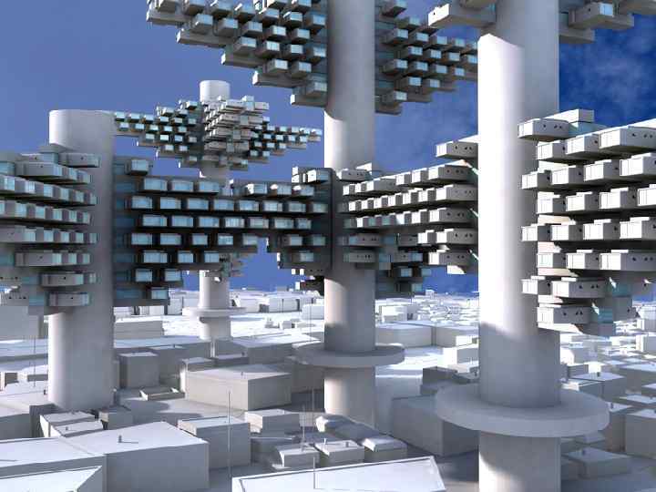 Концепция воздушного города Япония, 1962 г. Арх. Исодзаки Арата