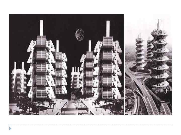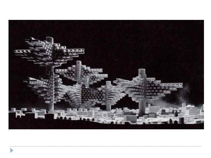 МЕТАБОЛИЗМ Самым важным является возможность перестройки сооружения и замены его составляющих в соответствии с требованиями, которые предъявляет быстроизменяющийся мир. Жесткий каркас постройки и меняющиеся коммуникации и интерьеры – вот что такое архитектура будущего.