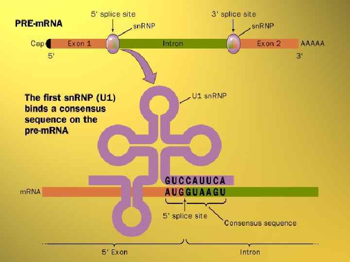 Кэп (модифицированный гуанилат) ЭКЗОНЫ ИНТРОНЫ СХЕМА ЭУКАРИОТИЧЕСКОЙ ПРЕ-МРНК