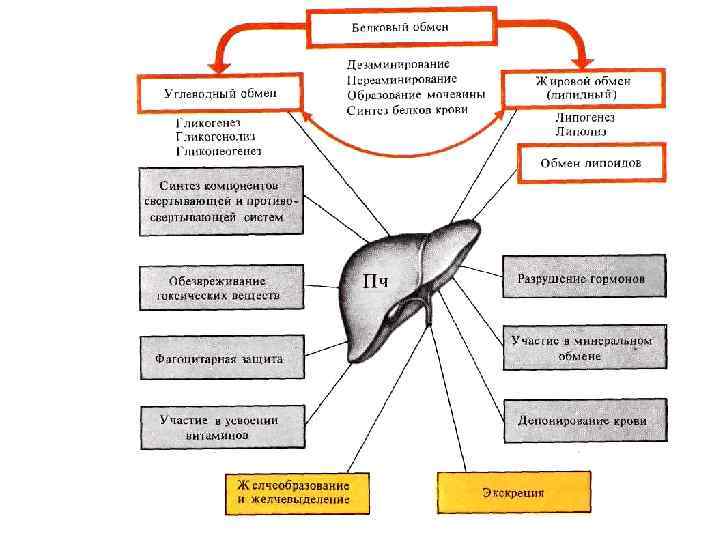 Метаболизм белков и аминокислот в печени b a) дезаминирование • удаление NH 2 от глютаминовой кислоты и превращение аммиака в мочевину в орнитиновом цикле a b) трансаминирование • синтез незаменимых АК