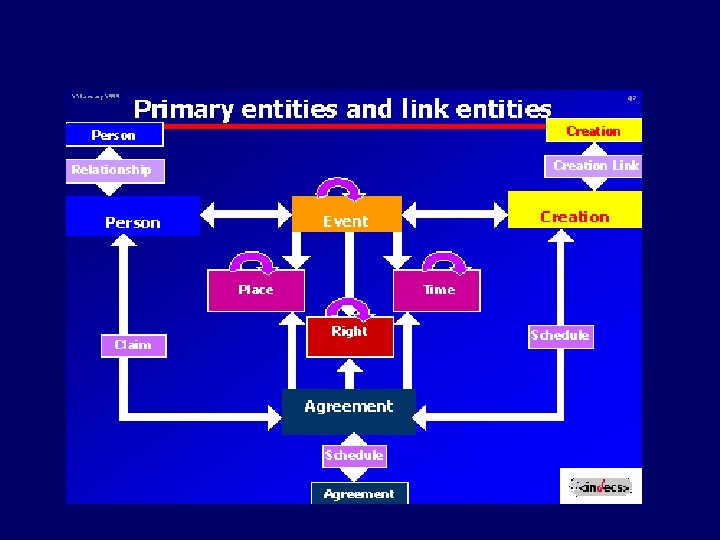 Metadata Schema • The content, semantic and syntax of a metadata schema will depend upon the domain that promulgates it, the function or purpose of the schema, and the level of aggregation, the type of objects and the type of entities to which it relates • Represent different types of entities including artifacts, persons, functions, business processes, events, record systems.