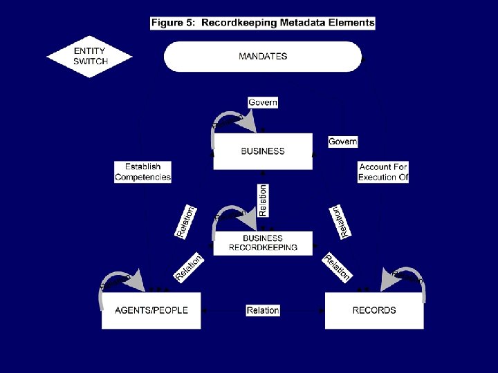 RM Standard • 2 perspectives on RM metadata – Metadata document content, context and structure at time of capture – Metadata that document RM and business processes throughout life cycle of record including changes to structure or context
