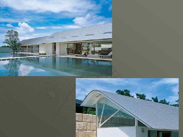 СВОЙСТВА А. ПОЛОЖИТЕЛЬНЫЕ Возможность получения СМ (строительных пластмасс): - со сравнительно низкой ρср (пример – пенопласты ~ 50 -100 кг/м 3) - со сравнительно низкими Г, Вm, водопроницаемостью (пример – мастики для гидроизоляции) - со сравнительно высоким R (пример - разновидность стеклопластика – сотни МПа) - с самой низкой теплопроводностью (пример – у пенопластов λ ~ 0, 04) - нет ограничений по цвету, фактуре, рисунку, могут быть светопрозрачными