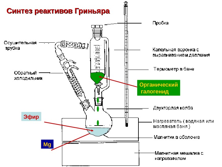 Синтез реактивов Гриньяра Mg. Эфир Органический галогенид
