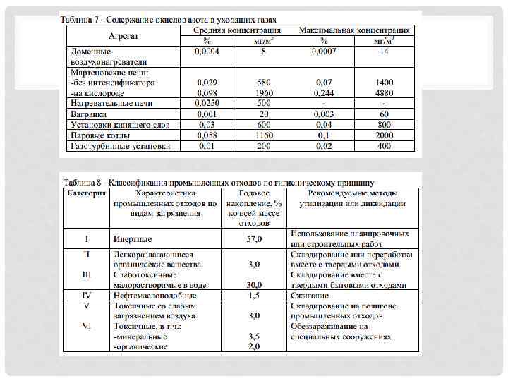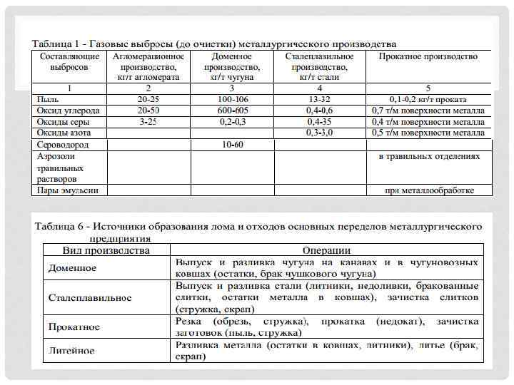 • Барлық өндіріс орнынан шыққан атмосфералық ауаны ластаушылардың 15 -20 %-ы қара металлургия өндіріс орныннан шығады. Орташа есеппен 1 млн т жылдық өндірісінен бөлінетін шаң -350 т/тәулігіне, күкірт ангидриді – 200, көміртек оксиді – 400, азот оксиді – 40 т/тәулігіне. • Металлургия өндіріс орнында көптеген қалдықтар болады, бірақ олардың тек 34%-ы ғана жойылады және залалсыздандырылады. Ол қалдықтар – доменді газ және кокстық газ.
