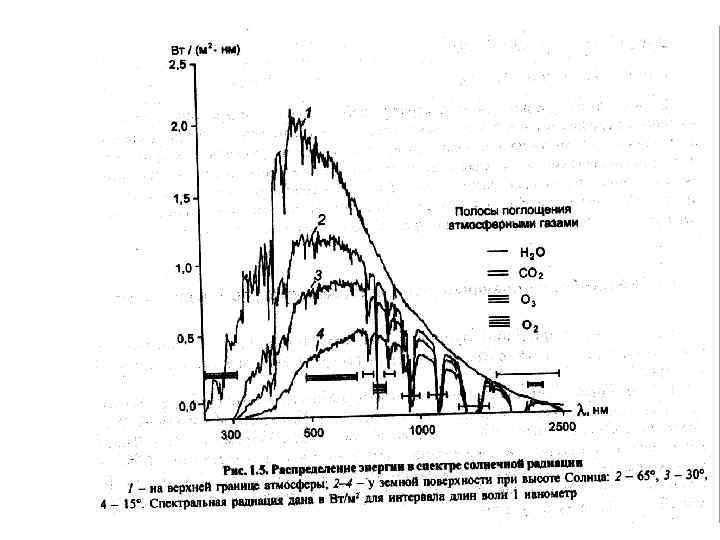 Спектральный состав солнечной радиации • Спектр солнечной радиации представляет собой распределение лучистой энергии по длинам волн ( ). . Волны длиной менее 4 мкм (микрометров) относятся к коротким, а более 4 мкм – к длинным. • В зависимости от качественной характеристики солнечной радиации ее спектр разделяют на три большие области: • ультрафиолетовую ( 0. 40 мкм), • видимую (0. 40 0. 75 мкм) и • инфракрасную ( 0. 75 мкм). • Ультрафиолетовая часть лучистой энергии Солнца, достигающая поверхности Земли составляет около 7%, • видимая часть – 46% • и инфракрасная – 47%. • При температуре поверхности Солнца основное количество энергии излучается в виде коротких волн. На верхней границе атмосферы спектр солнечной радиации практически заключается в интервале 0. 17 – 4 мкм.
