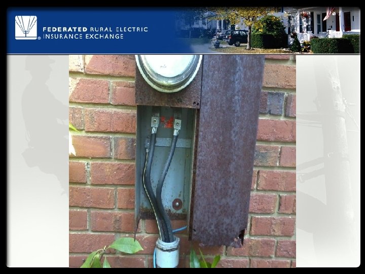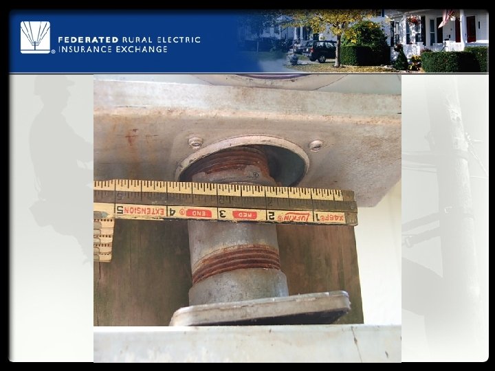 Service Line Insp. u General Condition u Clearance from the ground u Clearance from trees u Clearance from Structures u Weatherhead condition u Pole condition