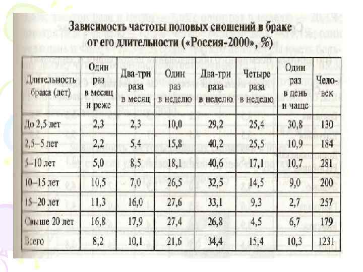 Отличительной особенностью сексуального поведения в браке является уменьшение частоты сексуальных сношений с увеличением стажа брака.