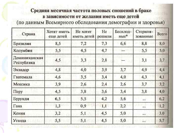 Сексуальное и репродуктивное поведение В современном обществе взаимосвязь сексуального и репродуктивного поведения должна проявляться в виде зависимости частоты половых сношений от степени удовлетворения потребности в детях (чем сильнее желание иметь то или иное число детей, тем выше должна быть частота половых сношений в браке).