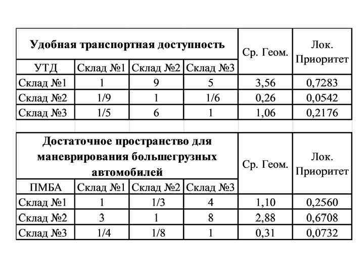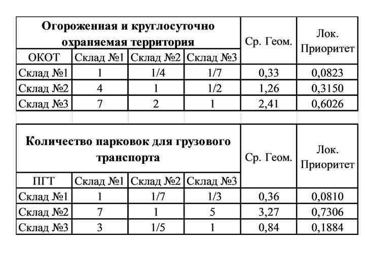 Данный способ считается наиболее достоверным, поэтому в дальнейшем локальные приоритеты рассчитываются с его помощью