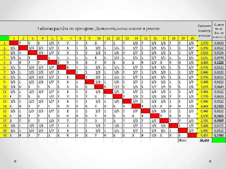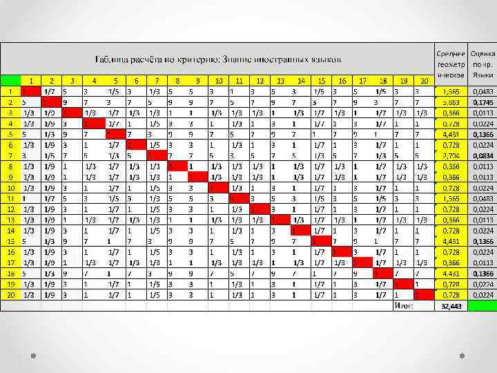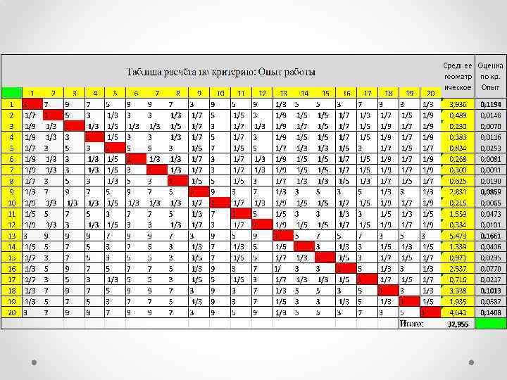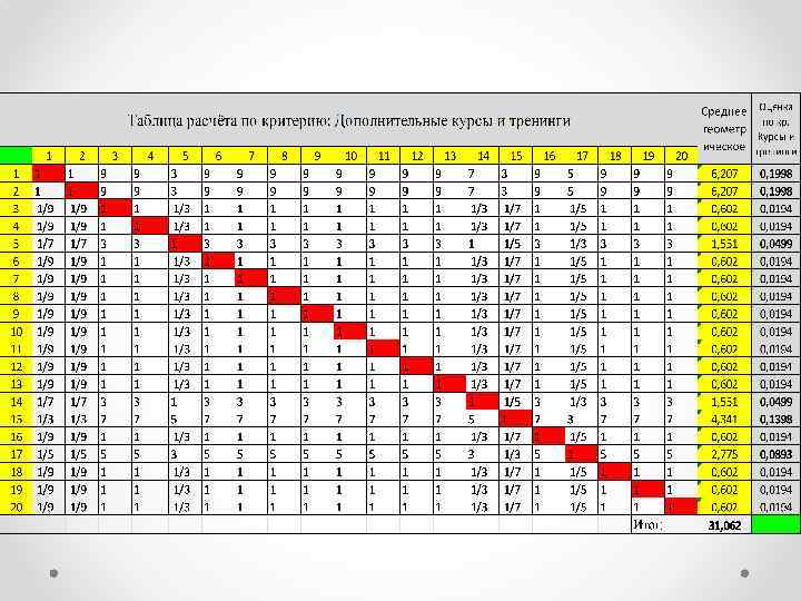 Шкала Томаса Саати оценки превосходства альтернатив Количественное Наименование значение Гораздо лучше 9 Значительно лучше 7 Лучше 5 Чуть лучше 3 Равны 1 Чуть хуже 1/3 Хуже 1/5 Значительно хуже 1/7 Гораздо хуже 1/9