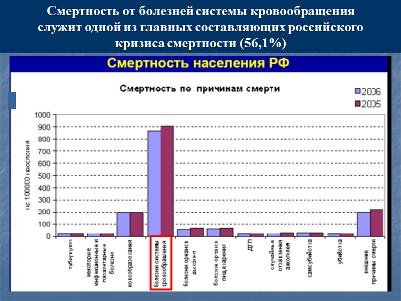 Смертность от болезней системы кровообращения служит одной из главных составляющих российского кризиса смертности (56,1%)