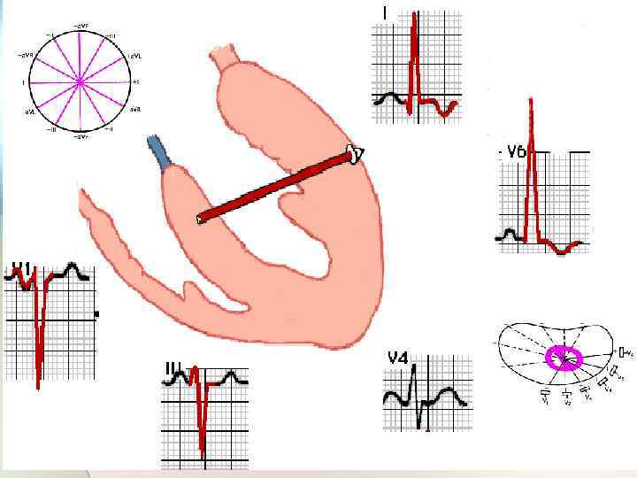 • При деполяризации и реполяризации миокарда создается ЭДС, которая распространяется на поверхность тела и служит основой для регистрации ЭКГ