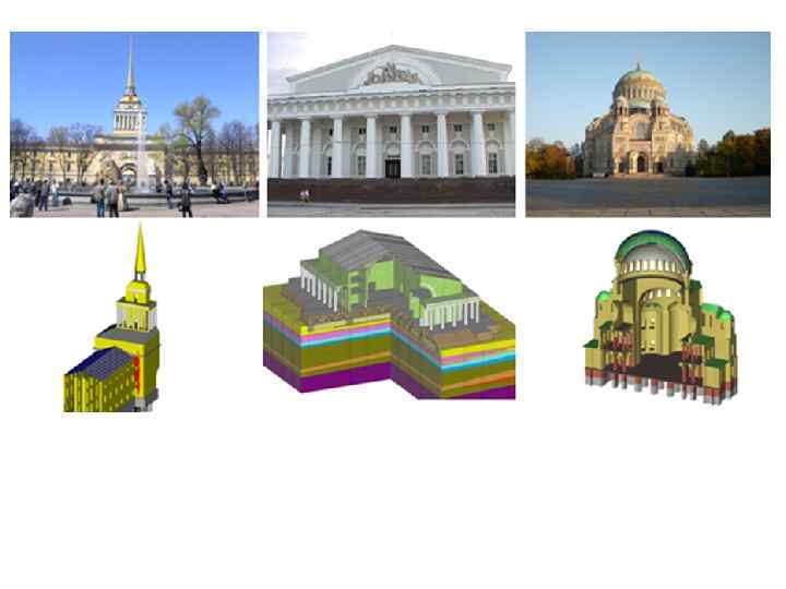 МКЭ модель многоэтажного здания в г. Киеве. 55034 узлов, 63357 конечных элементов, 326 838 уравнений Конечно-элементные схемы многоэтажных зданий