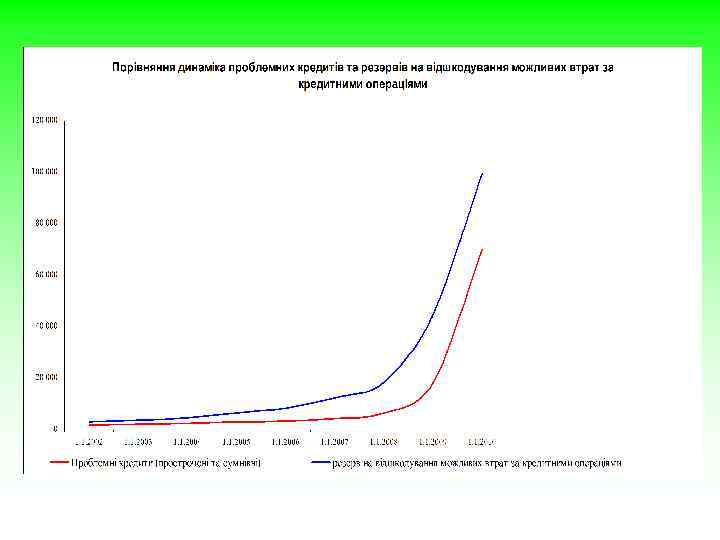 Динаміка зміни величини проблемних кредитів фізичних та юридичних осіб банків України, млн. грн. • Середня ставка за кредитами фізичних та юридичних осіб, відповідно, складає приблизно 24%. • Втрачений прибуток банків за 2009 рік внаслідок зростання проблемних кредитів дорівнює