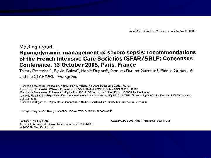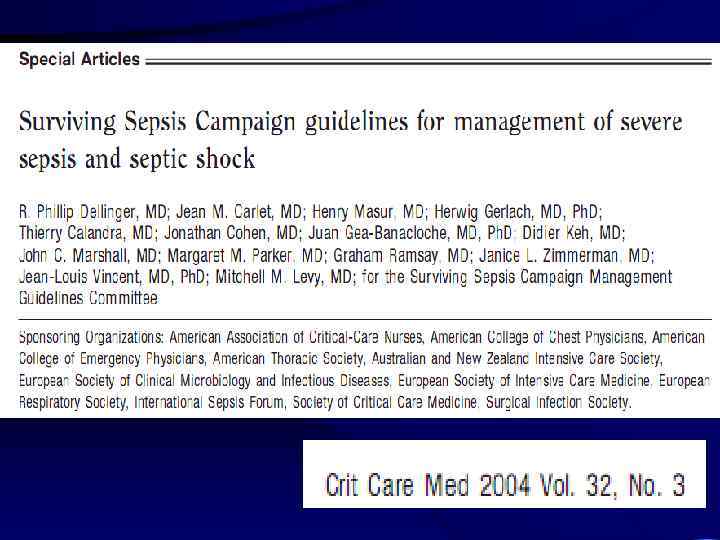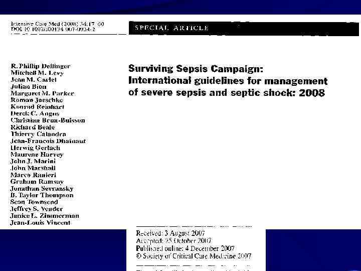 Методические (международные) рекомендации по лечению сепсиса, тяжелого сепсиса и септического шока Dellinger R. et al. , 2003 Dellinger R. et al. , 2007 Разработаны в рамках движения за выживаемость больных с сепсисом