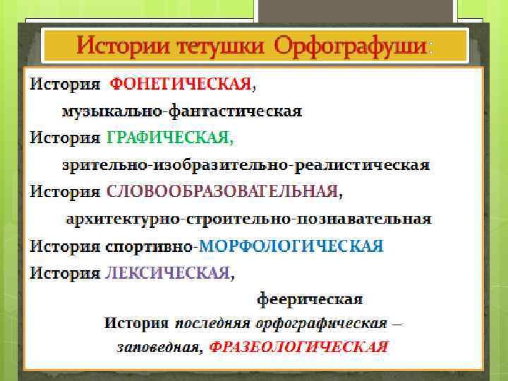 Проект включает в себя три этапа: ■ «Истории тетушки Орфографуши» ■ «Рассказы госпожи Пунктуации» ■ «Записки сударыни Культуры Русской Речи»