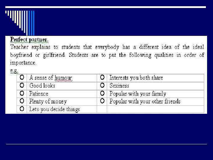 Требования, предъявляемые к учебным текстам (Соловова Е. Н. ) o Объем текста o Место основной идеи текста o Тематика текстов o Проблематика текстов o Степень аутентичности (authentic materials, authentic tasks)