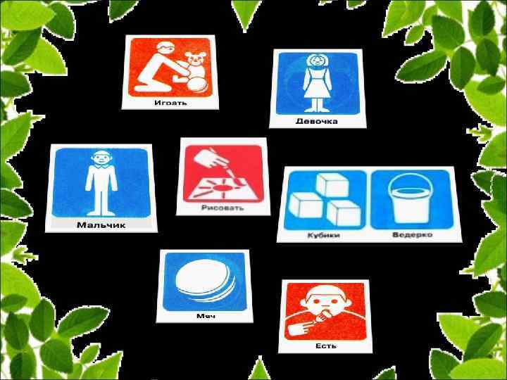 1. Составление фразы путем добавления недостающей пиктограммы, которой нет в арсенале ребенка, и ему предлагается придумать ее самому