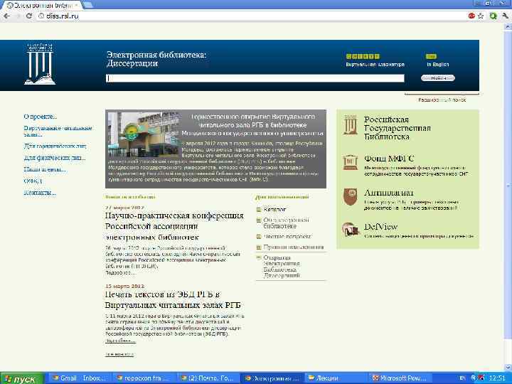 Электронная библиотека диссертаций РГБ http: //diss. rsl. ru ¡ Научная библиотека ТГУ предоставляет доступ к Электронной библиотеке диссертаций Российской государственной библиотеки (РГБ). База насчитывает более 150 000 электронных версий диссертаций и авторефератов, защищенных с 1998 г. по настоящий момент.