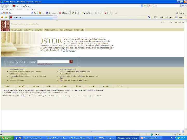 JSTOR http: //www. jstor. org/ Основная цель JSTOR — предоставлять электронный доступ к архивным номерам ведущих журналов по гуманитарным, общественным и естественным наукам. Томскому государственному университету предоставлена возможность работы с одной из шести баз данных JSTOR — Art & Sciences 1 Collection. База данных JSTOR уникальна, так как архивы ведущих научных журналов в полном объеме были преобразованы в цифровую форму, начиная с самых первых изданий, датированных еще 1800 -ми годами.