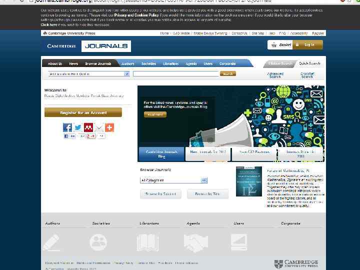 Cambridge University Press http: //journals. cambridge. org/ Национальный электронноинформационный консорциум НЭИКОН при поддержке Фонда Форда открывает российским университетам бесплатный доступ к журналам Кембриджского университета: коллекции Human & Social Sciences и Science, Technology & Medicine. Полнотекстовая база данных содержит 279 журналов издательства Cambridge University Press.