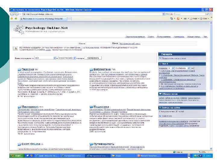 Psychology Online. Net http: //www. psychology-online. net/ Научная и популярная психология: история, теория, практика. Статьи, книги, рефераты, конспекты и учебники по психологии. Психологические тесты. Путеводитель. Форумы.