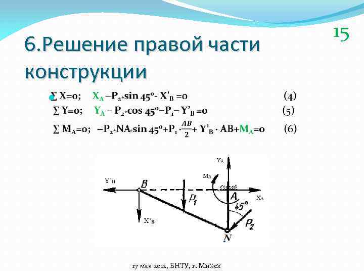 6. Решение правой части конструкции 17 мая 2012, БНТУ, г. Минск 15