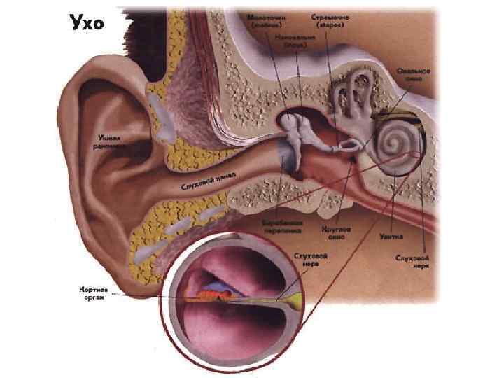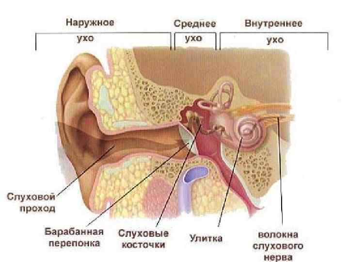 слуховой анализатор звукопроводящий звуковоспринимающий • наружное и среднее ухо • все остальные отделы анализатора • некоторые части внутреннего уха (жидкость • от волосковых клеток кортиева органа до лабиринта и основная нервных клеток слуховой мембрана) области коры головного мозга