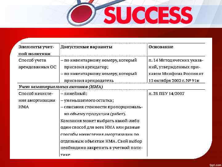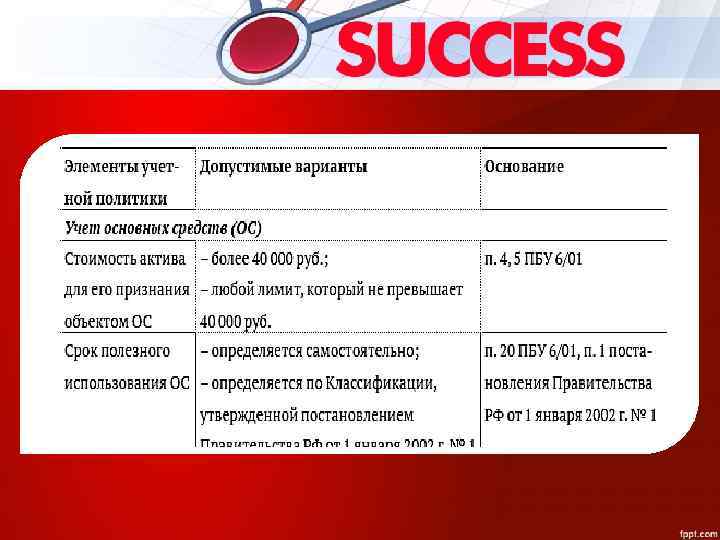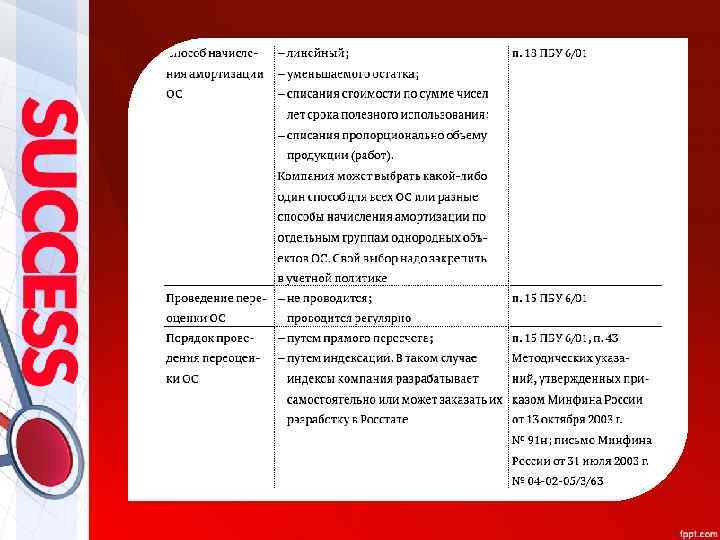 • Способ уменьшаемого остатка - годовая норма амортизации определяется так же, как и при линейном способе. Однако применяется она не к первоначальной, а к остаточной стоимости объекта основных средств на начало отчетного года. • Пример. Организация приобрела объект основных средств. Первоначальная стоимость объекта - 150 000 руб. Срок полезного использования - 5 лет. • Амортизация начисляется способом уменьшаемого остатка. • Годовая норма амортизации составит 20% (100% : 5 лет). • Годовая сумма амортизации: • 1 -й год эксплуатации - 30 000 руб. (150 000 руб. x 20 : 100); • 2 -й год - 24 000 руб. ((150 000 руб. - 30 000 руб. ) x 20 : 100); • 3 -й год - 19 200 руб. ((150 000 руб. - 30 000 руб. - 24 000 руб. ) x 20 : 100) и т. д.