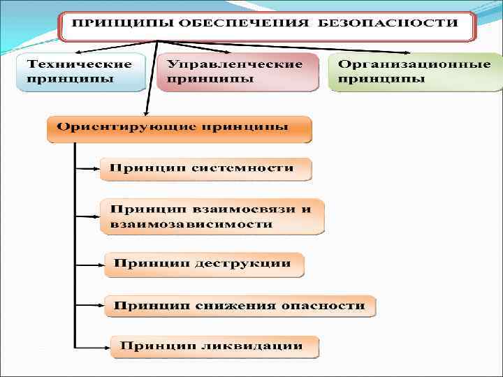 Управление риском - это логическое продолжение оценки риска. Оно направлено на обоснование наилучших в данной ситуации решений по его минимизации, т. е. обеспечения безопасности. Принципы, методы, средства – это логические этапы обеспечения безопасности. Выбор их зависит от конкретных условий. ПРИНЦИП – это идея, мысль, основное положение. МЕТОД – это путь, способ достижения цели. СРЕДСТВА – конкретная реализация принципов и методов.